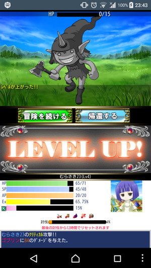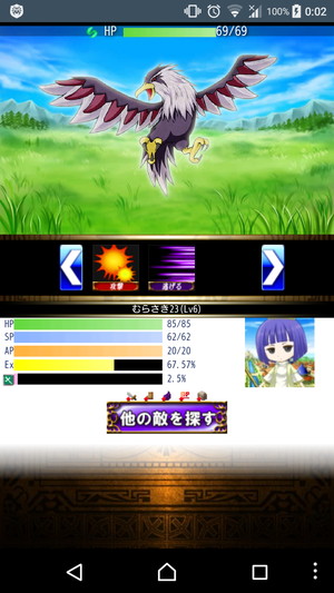 戦闘は敵のHPと自分のステータスを見比べながら、勝てそうな敵だったら攻撃というアイコンをタップして、攻撃をしかけます。