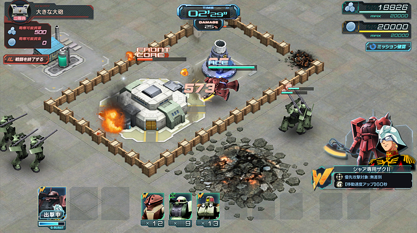 ジオラマベースでユニットの開発を続けて、モビルスーツ軍団を編成したら、敵のジオラマベース攻略に挑んでみよう。