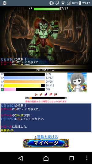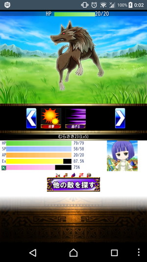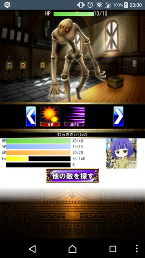 戦闘は敵のHPと自分のステータスを見比べながら、勝てそうな敵だったら攻撃というアイコンをタップして、攻撃をしかけます。