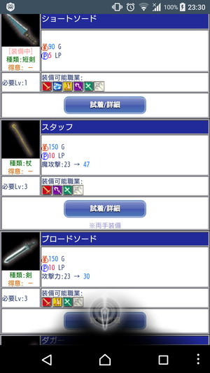 「RPG ブレイブラグーン」では武器によって必要レベルがあり、またその武器を使える職業も決まっているので、買うときには注意が必要です。