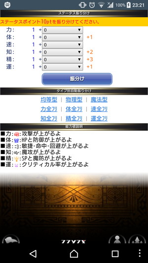 「RPG ブレイブラグーン」は自分でポイントを振り分けることもできるのですが、タイプ別に自動で振り分けしてくれる機能があります。